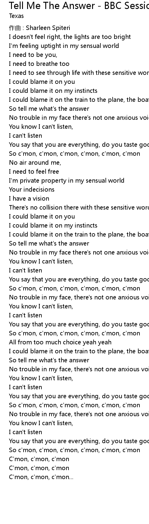 | Song | Tell Me The Answer - BBC Session - Simon Mayo 13/4/99 |
