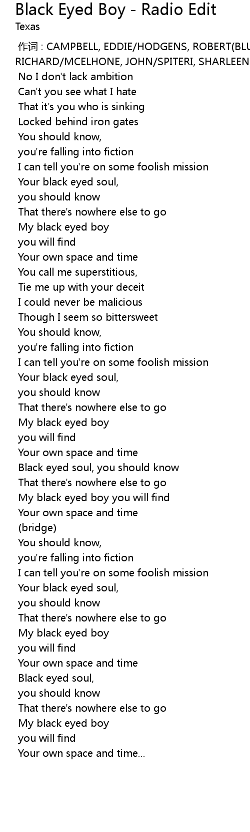 | [00:00.00] | 作词 : CAMPBELL, EDDIE/HODGENS, ROBERT(BLUEBELL,BOBB/HYND, RICHARD/MCELHONE, JOHN/SPITERI, SHARLEEN |