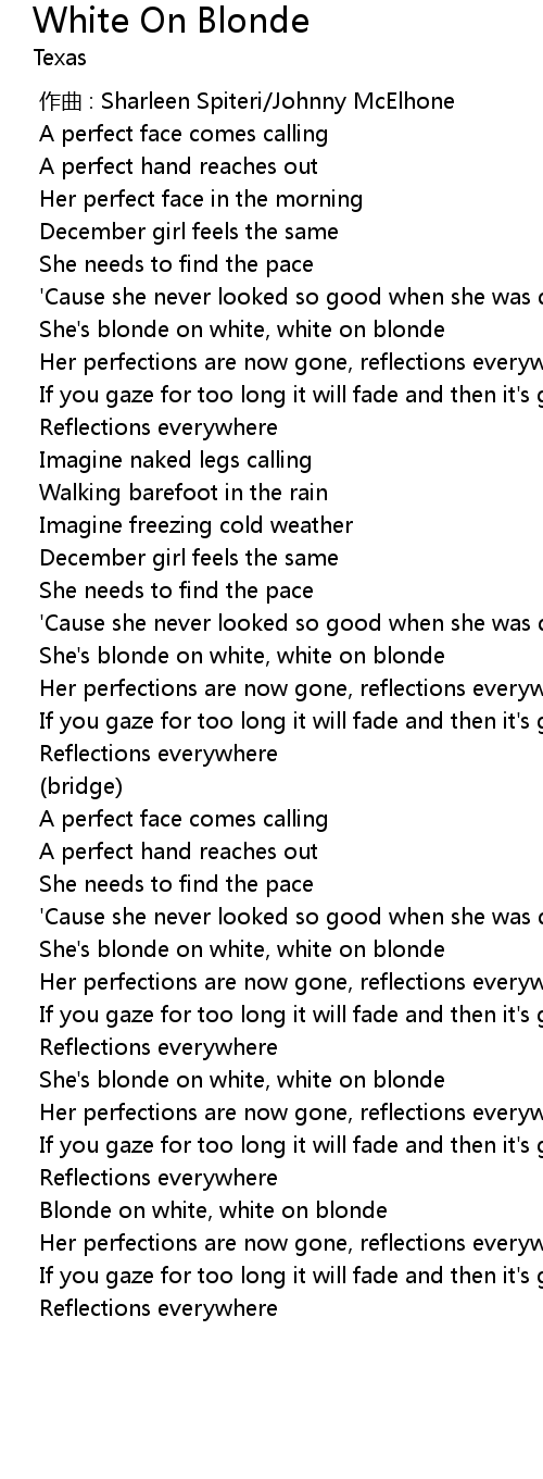 | [00:44.04] | She' s blonde on white, white on blonde |