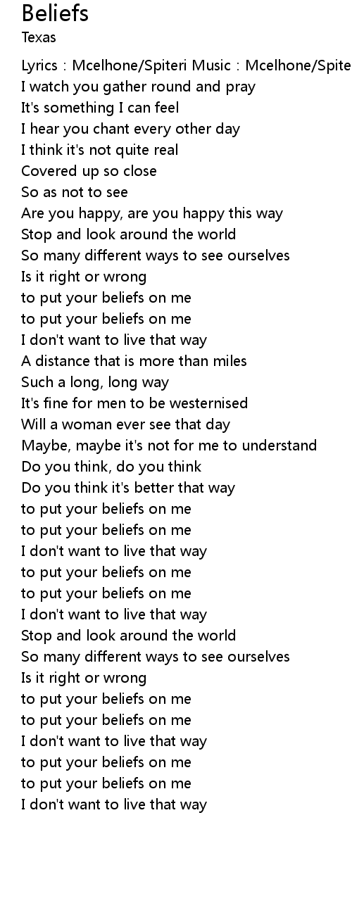 | Song | Beliefs |