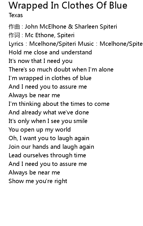 | Song | Wrapped In Clothes Of Blue |