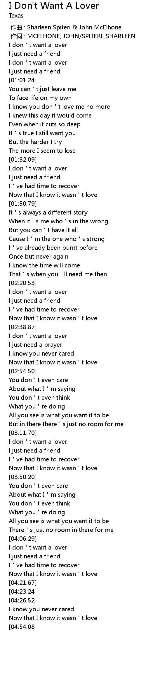 | [00:01.00] | zuò cí : MCELHONE, JOHN SPITERI, SHARLEEN |