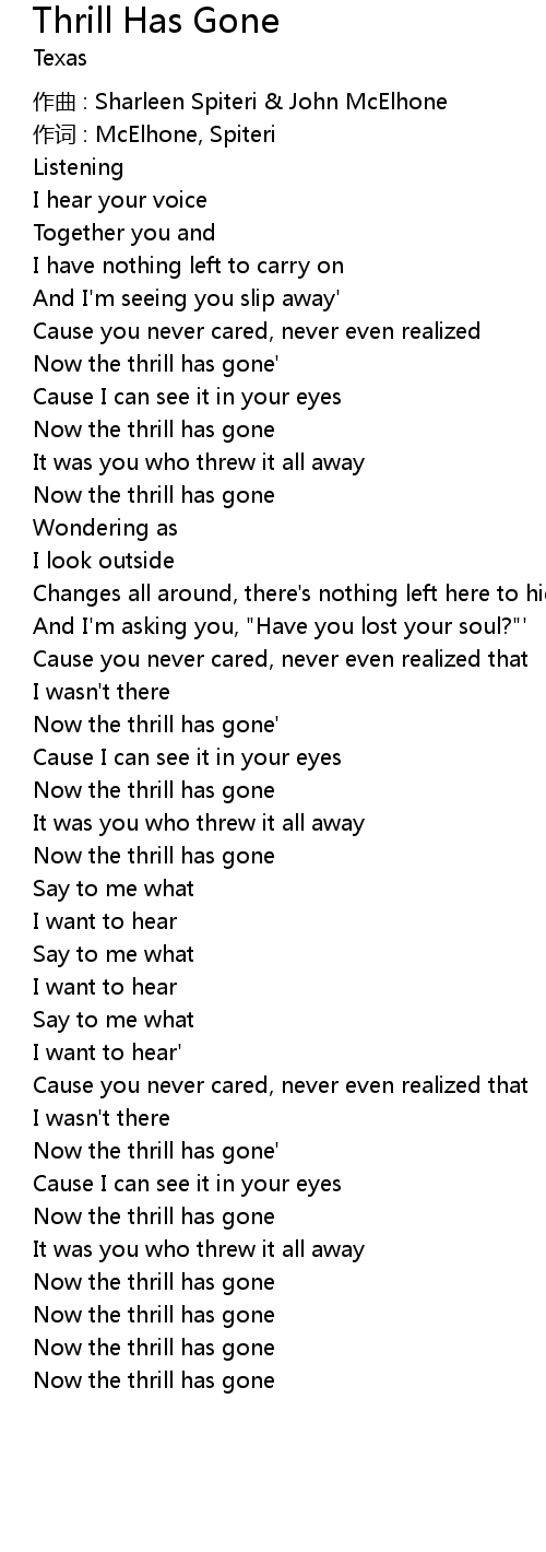 | Now the thrill has gone |