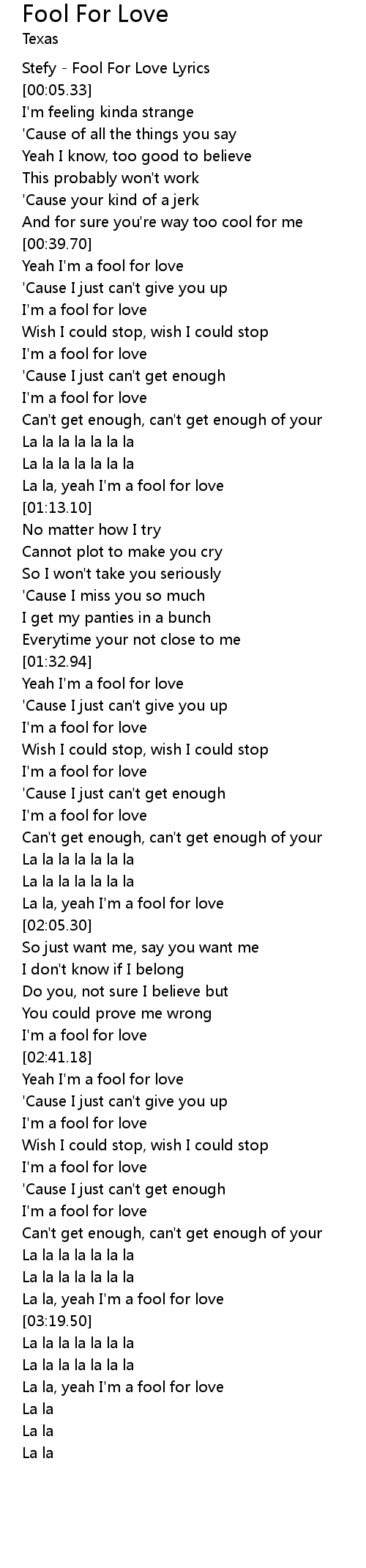| [03:25.64] | La la, yeah I'm a fool for love |