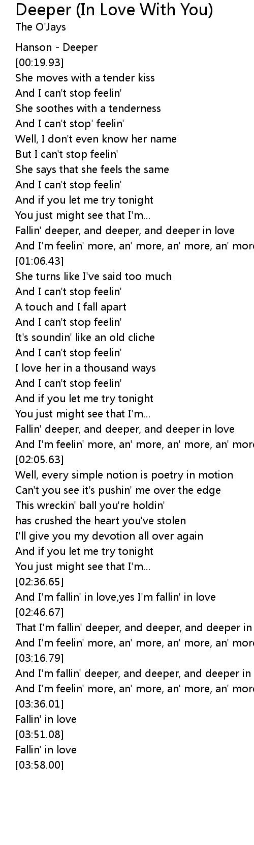 [02:55.91] That I'm fallin' deeper, and deeper, and deeper in love