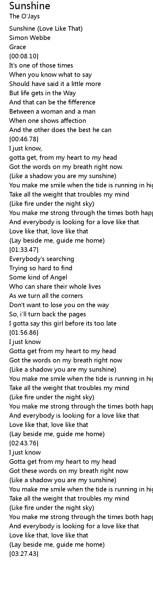 Sunshine (Love Like That) |