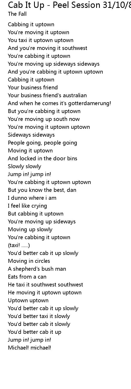 Cab It Up - Peel Session 31/10/88 Lyrics