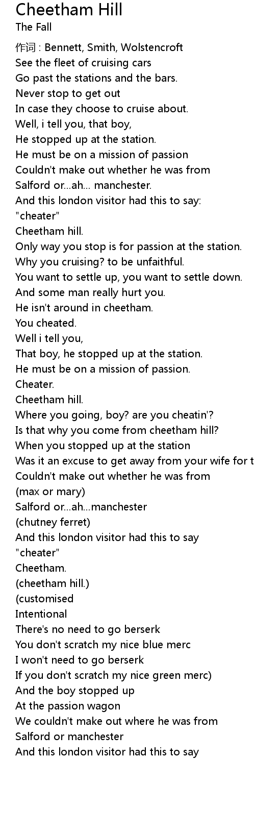 | Song | Cheetham Hill |