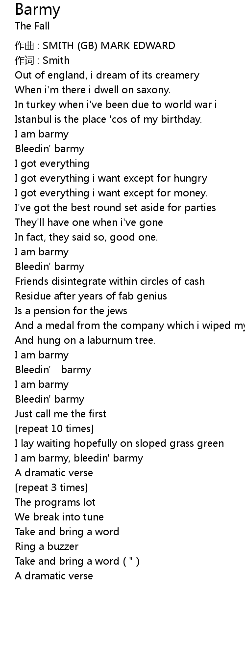 | I am barmy | |