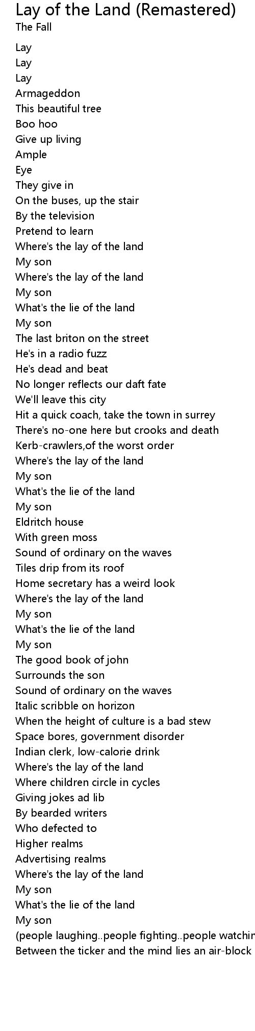 Where's the lay of the land |