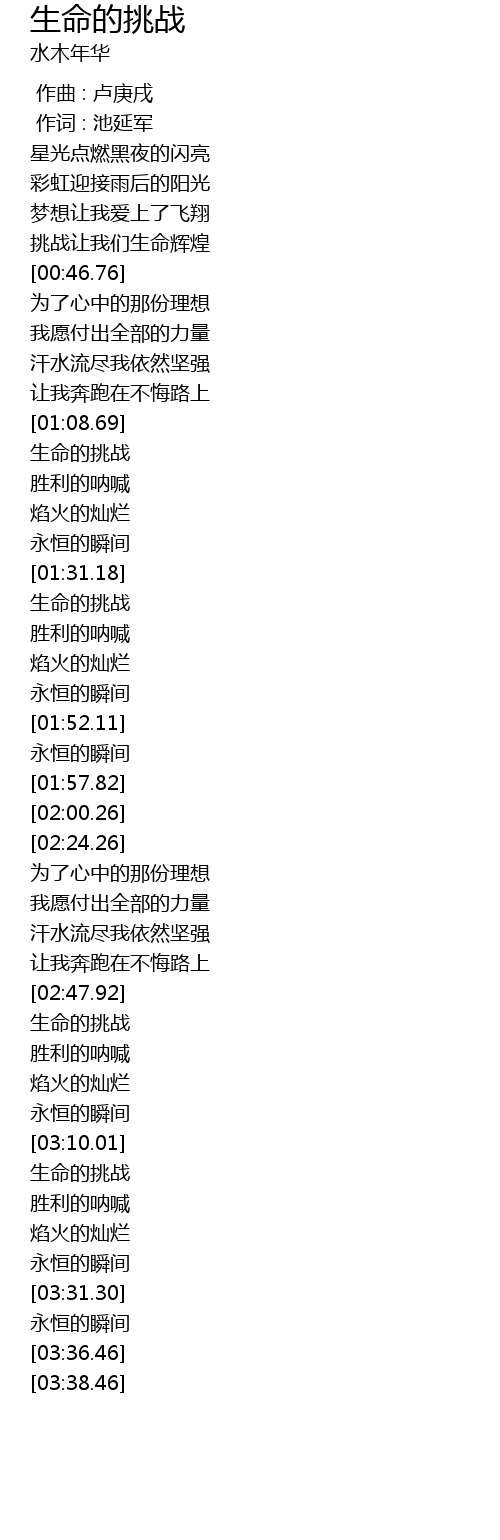 | [03:10.69] | 生命的挑战 |