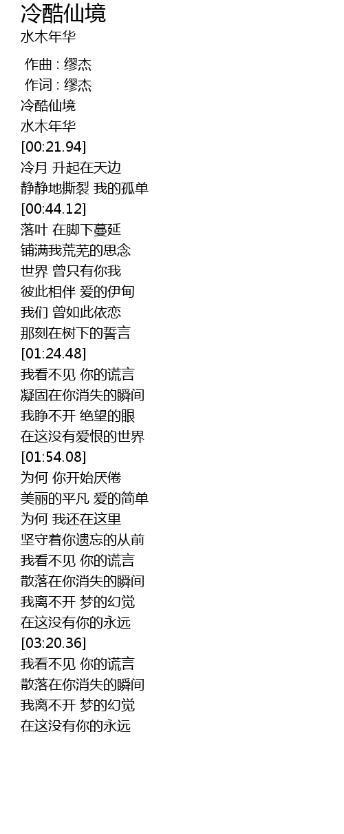 | [03:04.94] | 我离不开 梦的幻觉 |