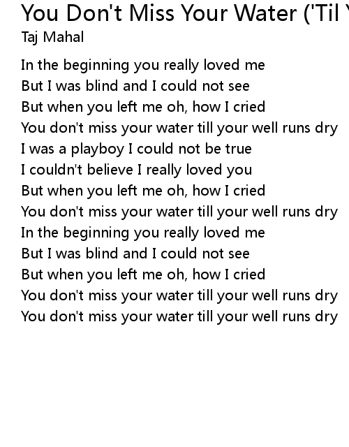 Song You Don't Miss Your Water ('Til Your Well Runs Dry)