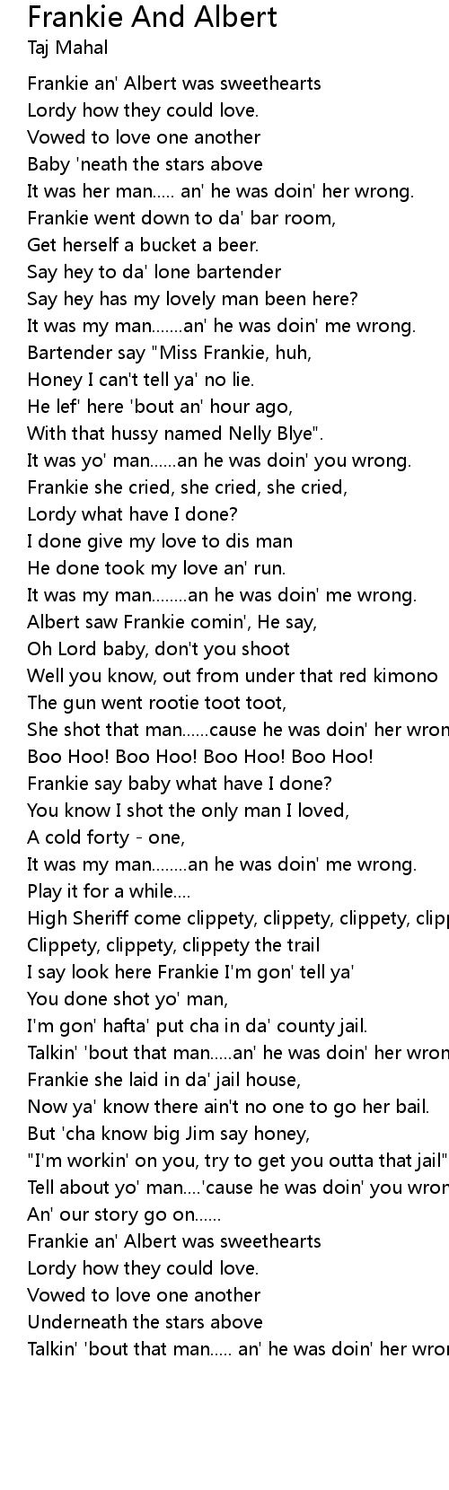 Talkin' 'bout that man..... an' he was doin' her wrong. |