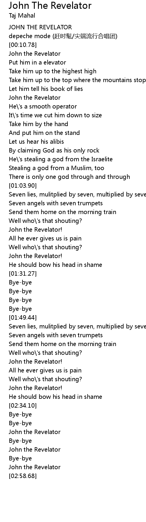 | [02:06.61] | Seven lies, mulitplied by seven, multiplied by seven again |