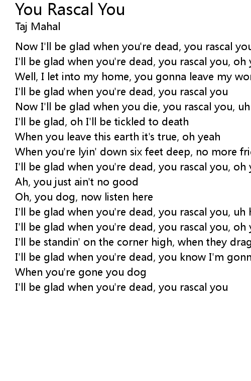 Now I'll be glad when you're dead, you rascal you, uh huh |