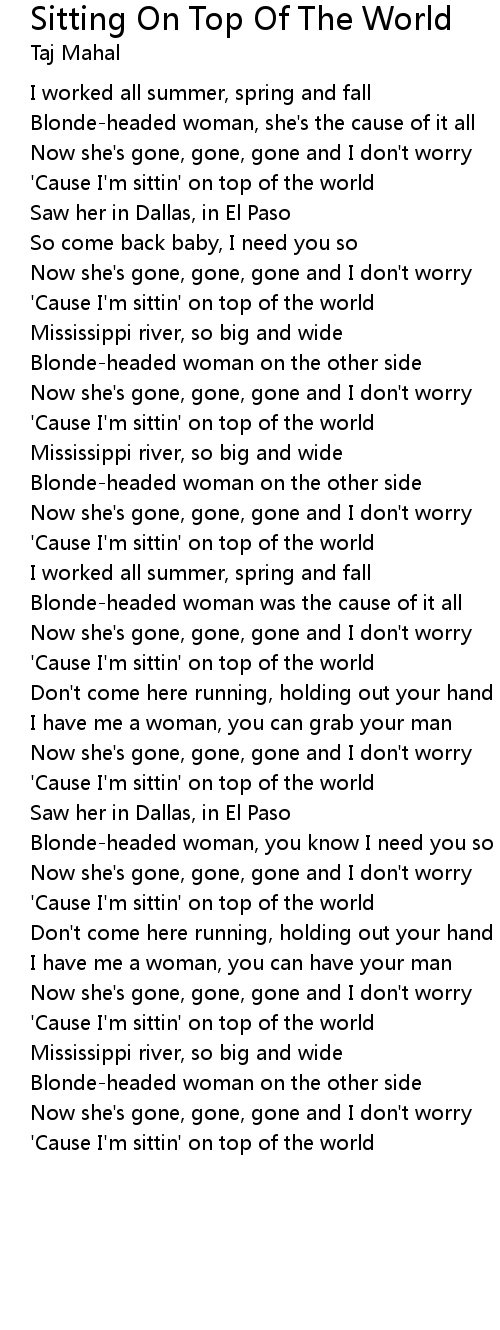 'Cause I'm sittin' on top of the world |
