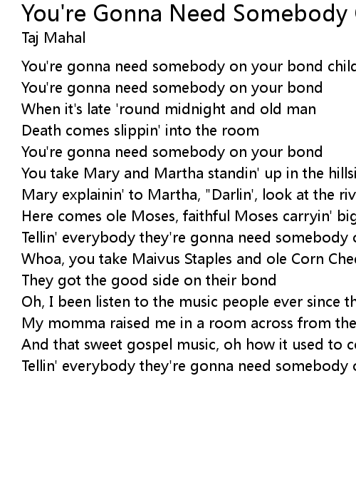 You're Gonna Need Somebody On Your Bond Lyrics