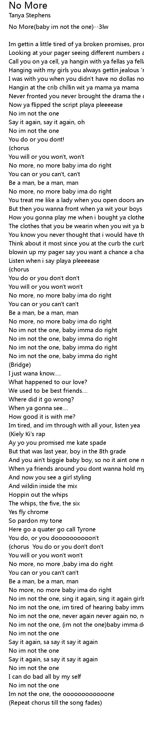 No more, no more ,baby ima do right |
