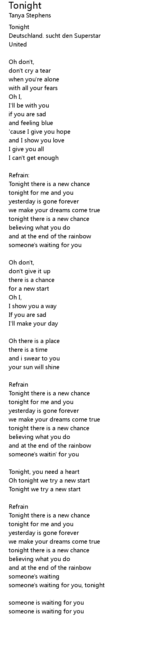 Tonight there is a new chance |