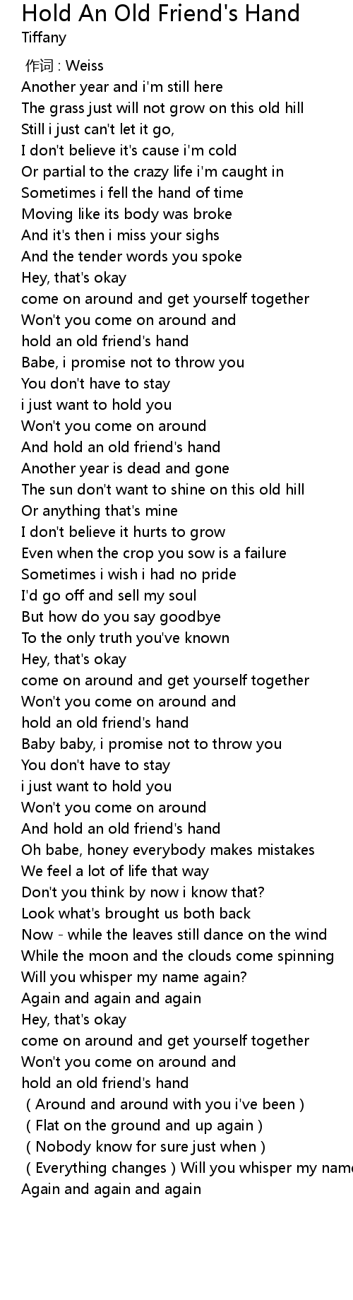 | [02:18.95] | hold an old friend' s hand |