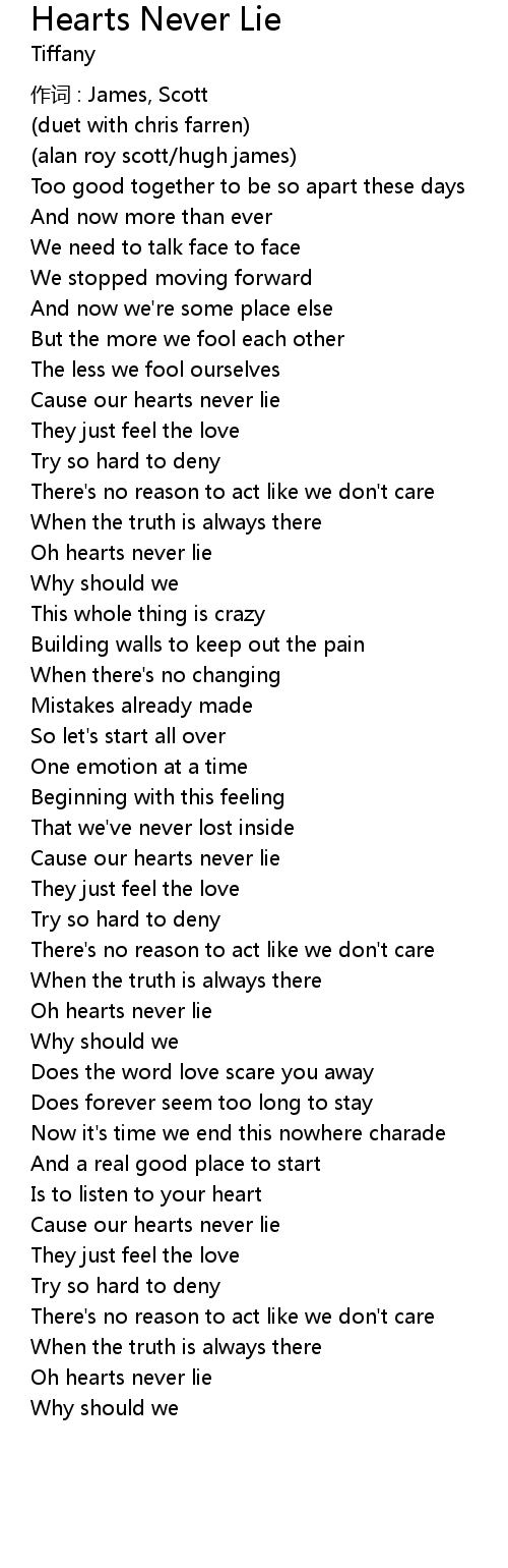 | Oh hearts never lie | |