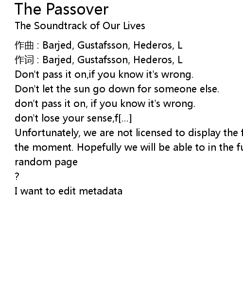 | Unfortunately, we are not licensed to display the full lyrics for this song at the moment. Hopefully we will be able to in the future. Until then, how about a | |