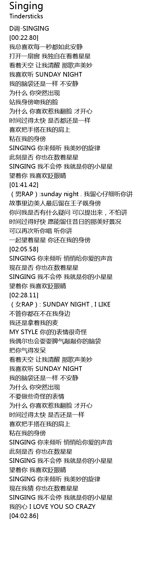 | [02:31.30] | (女RAP): SUNDAY NIGHT , I LIKE |