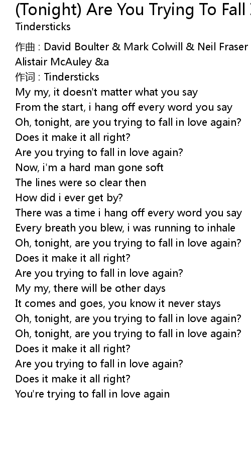 | Song | (Tonight) Are You Trying To Fall In Love Again - BBC In Session - Mark Radcliffe 17/10/95 |