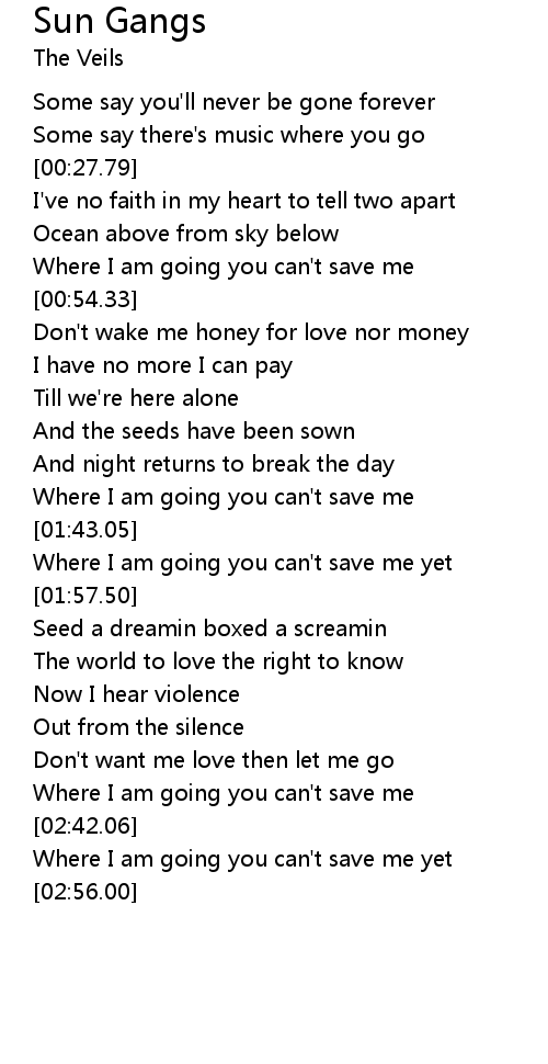| [02:36.33] | Where I am going you can't save me |