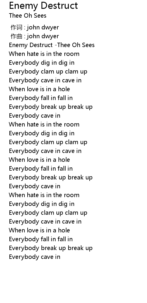 | [00:00.00] | Enemy Destruct Thee Oh Sees |