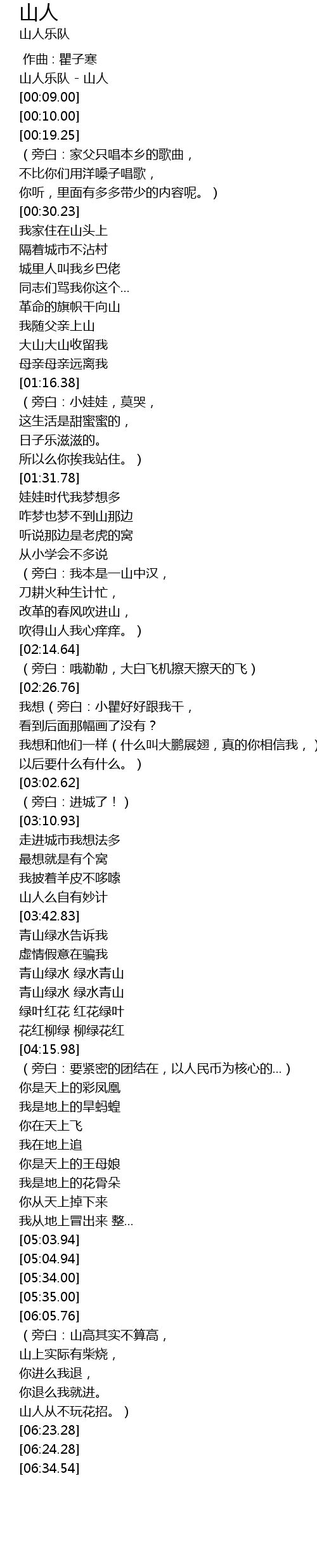 | [02:04.29] | pang bai: wo ben shi yi shan zhong han, |