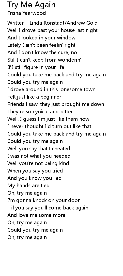 | Could you take me back and try me again | |