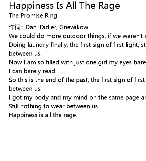| Song | Happiness Is All The Rage |