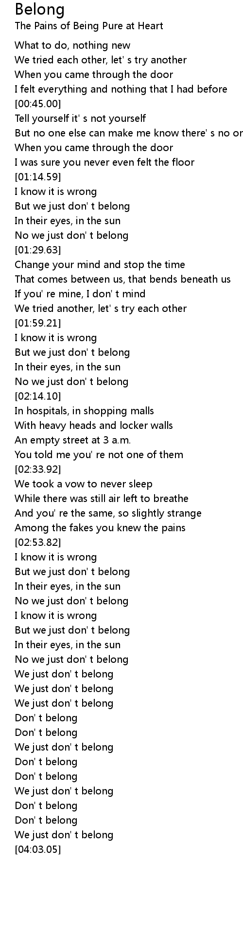 No we just don' t belong |