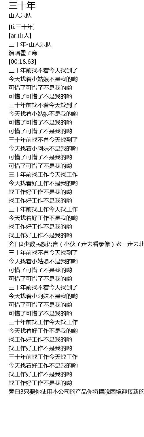 | [00:03.748] | sān shí nián shān rén yuè duì |