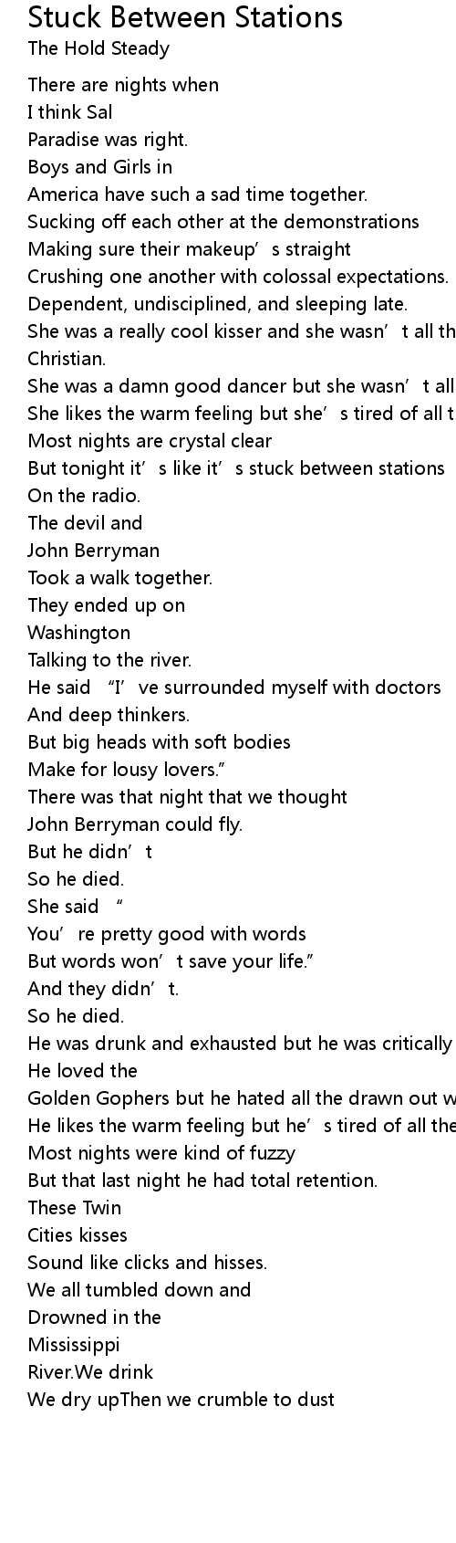 | Song | Stuck Between Stations |