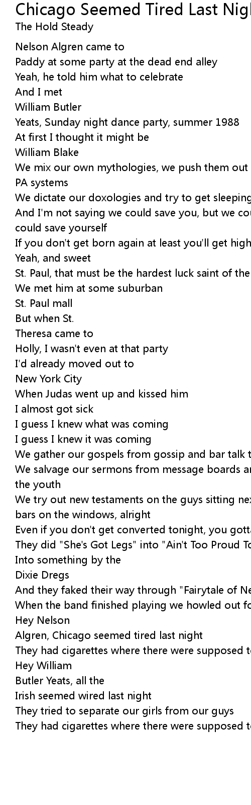 We try out new testaments on the guys sitting next to us in the bars with the bars on the windows, alright