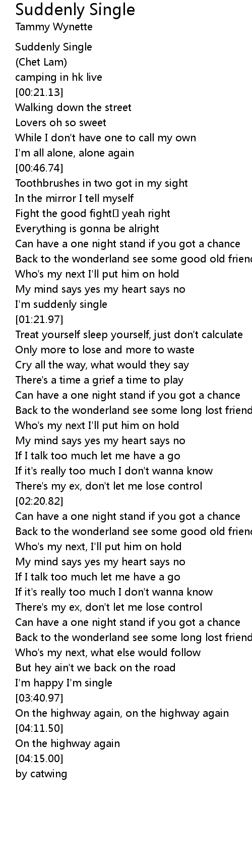 | [01:19.45] | I'm suddenly single |