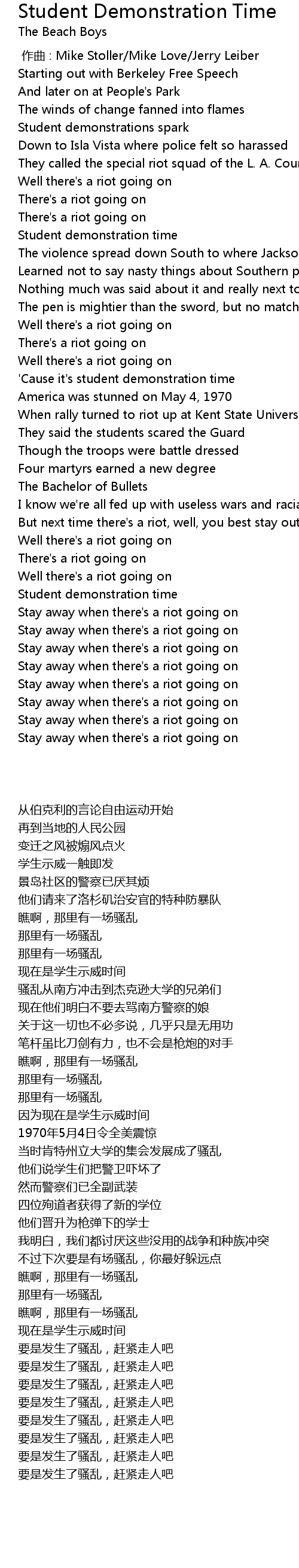 | [01:39.500] | ' Cause it' s student demonstration time |