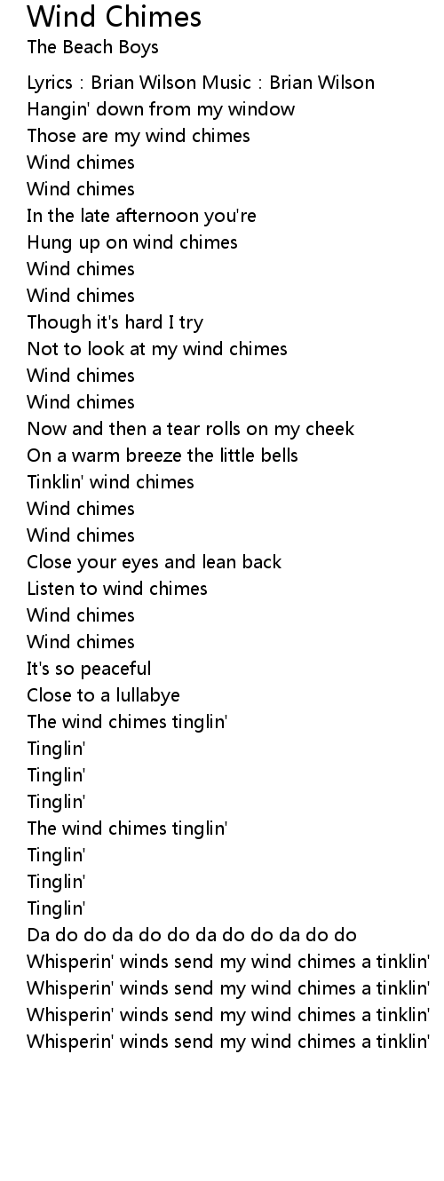 | Whisperin' winds send my wind chimes a tinklin' | |