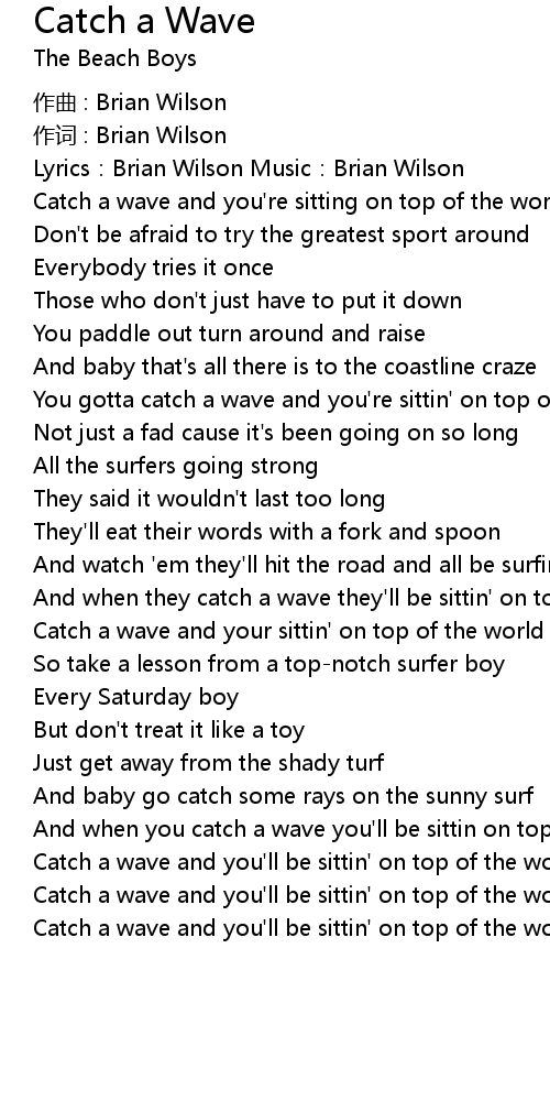 | Catch a wave and you' ll be sittin' on top of the world | |