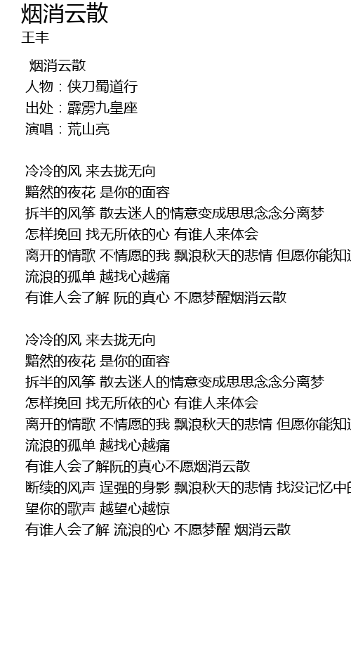| Song | 烟消云散 |