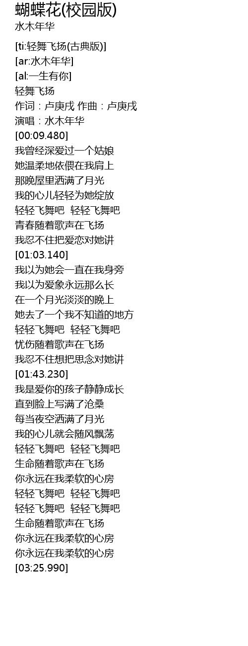 | [03:01.940] | 轻轻飞舞吧 轻轻飞舞吧 |