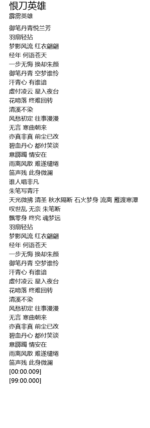 | [02:09.92] | 御笔丹青 空梦谁怜 |