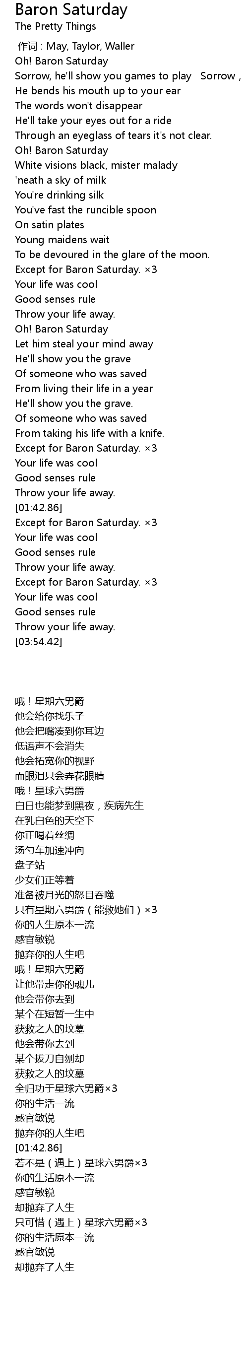 | [03:30.48] | Except for Baron Saturday. ×3 |