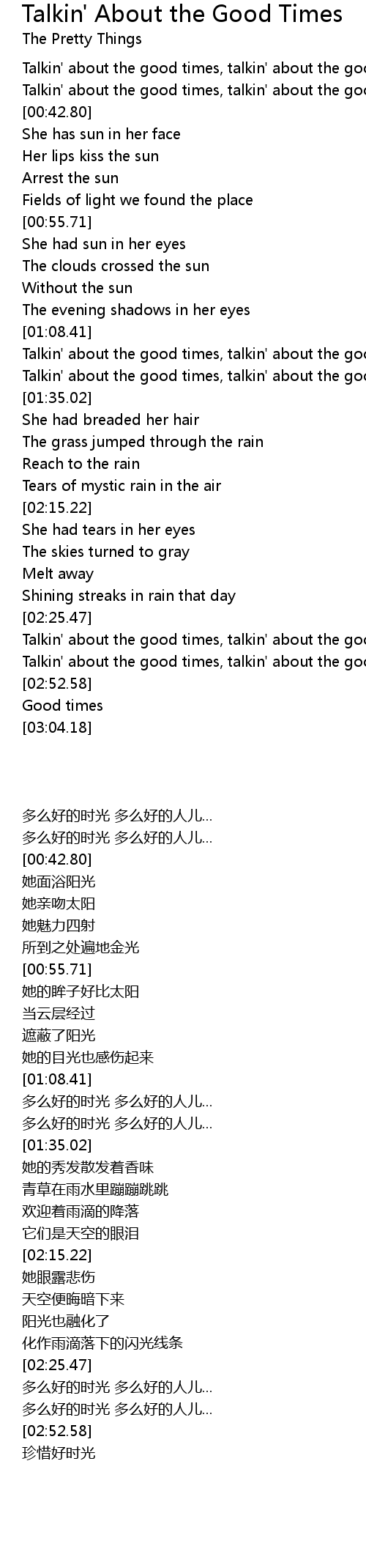 [02:29.47] Talkin' about the good times, talkin' about the good...