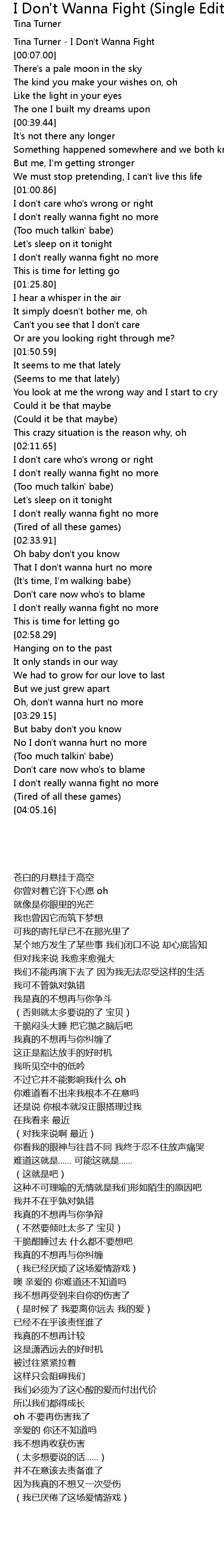 Tina Turner - I Don't Wanna Fight |