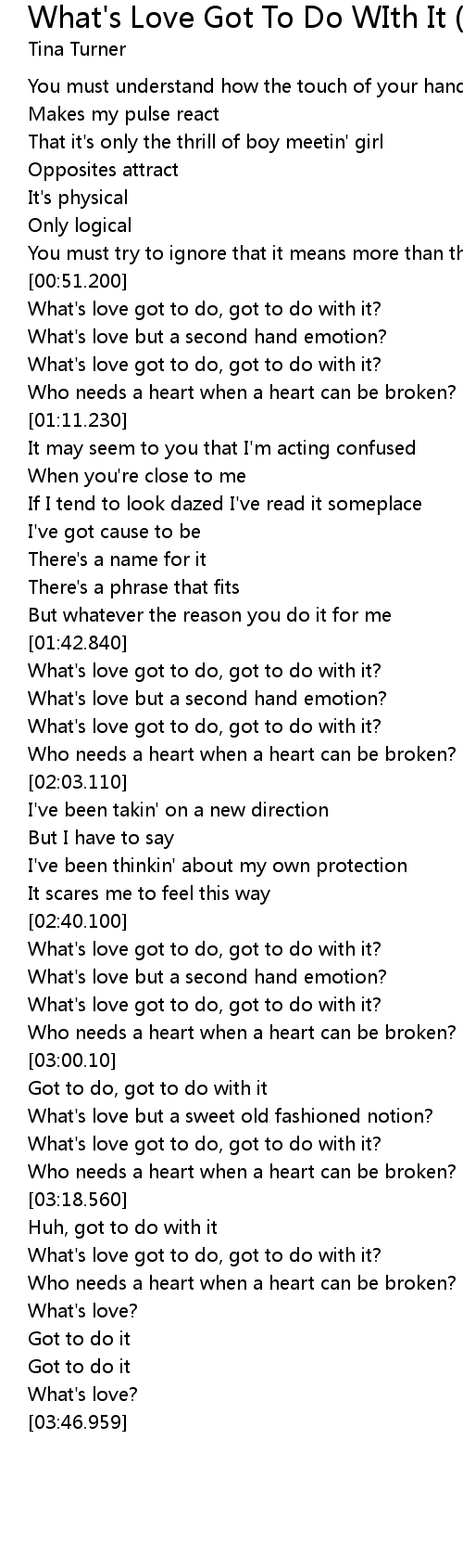 | [03:01.420] | Got to do, got to do with it |