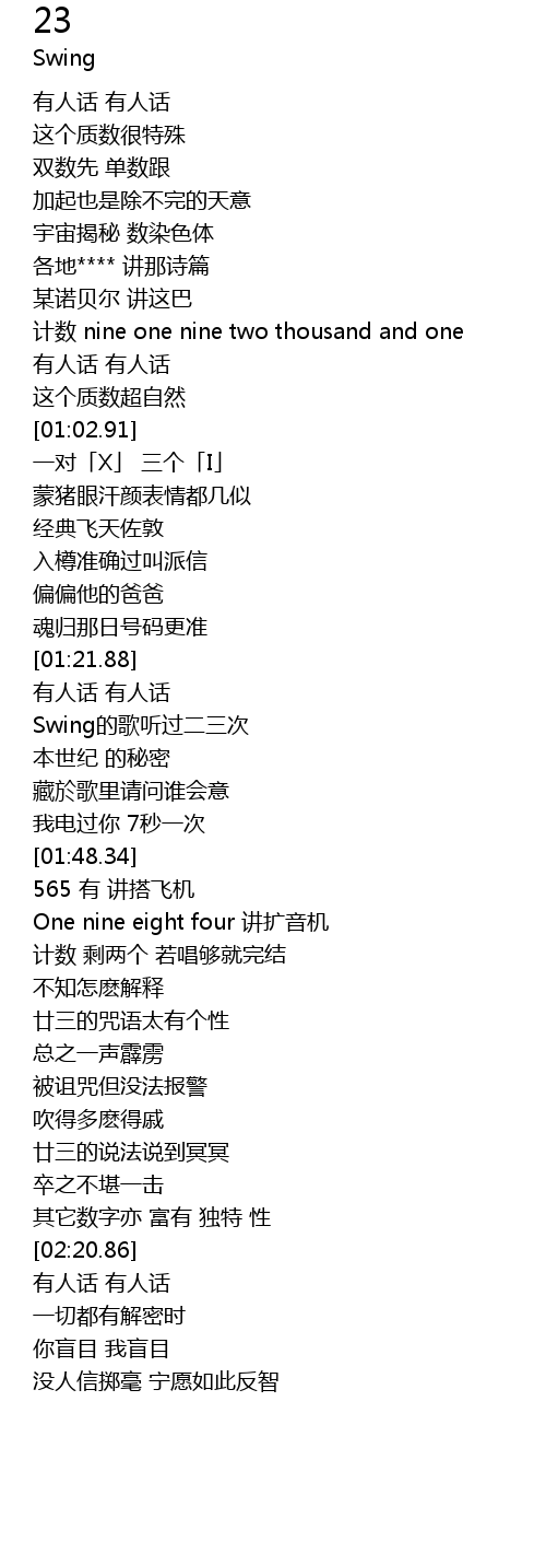 | [02:03.46] | 廿三的咒语太有个性 |